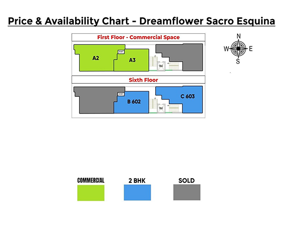 | C 603 | 1200 Sqft | 12800000 | 2 BHK | 6th Floor |